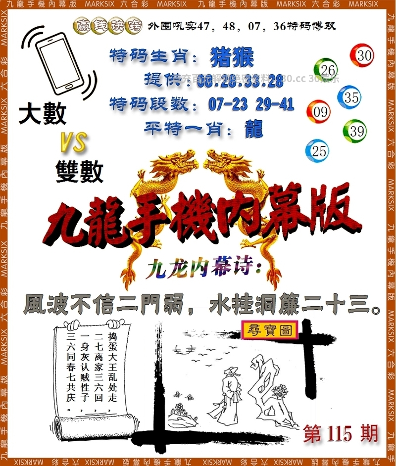 | 115期绝杀:08.11.12.23.24.35.36.48开蛇01准 |